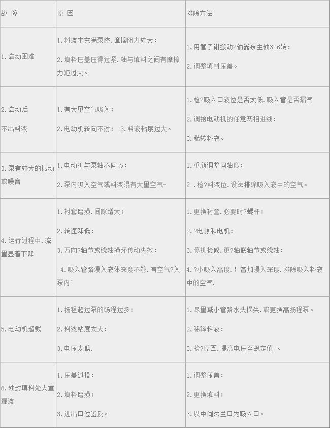 4.當流量顯著減少.說明橡膠村套已磨損.應更?新村套後再運轉。